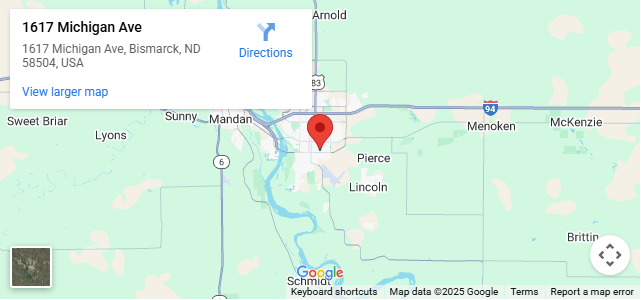 Bismarck Community Church is located at 1617 Michigan Avenue. You’ll find our building just off of Airport Road between Main Avenue and Bismarck Expressway.