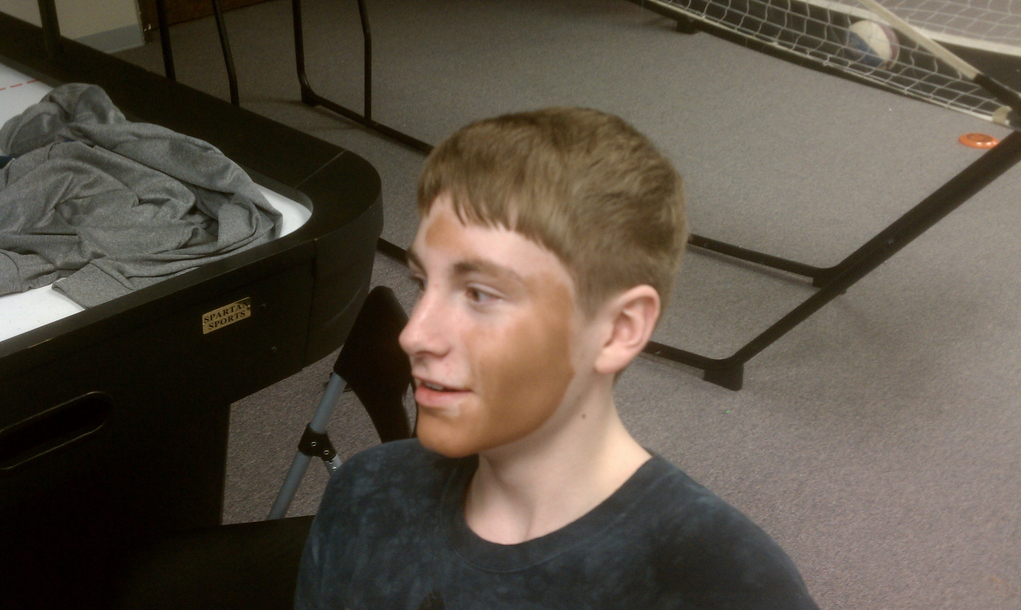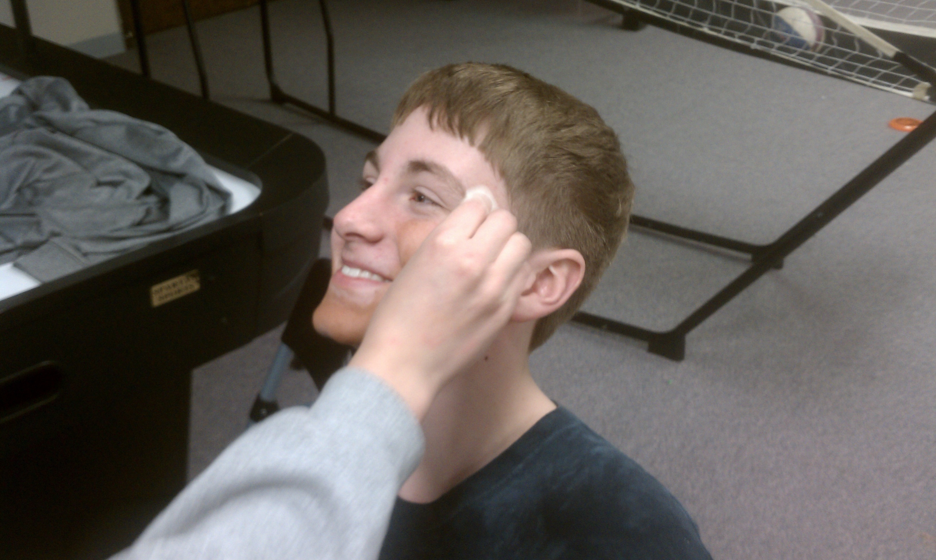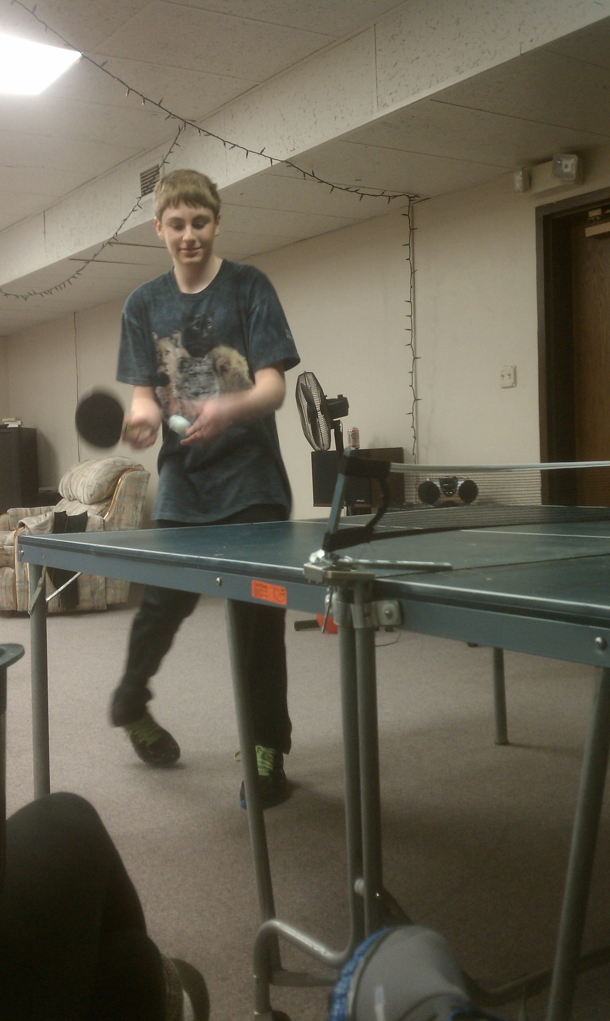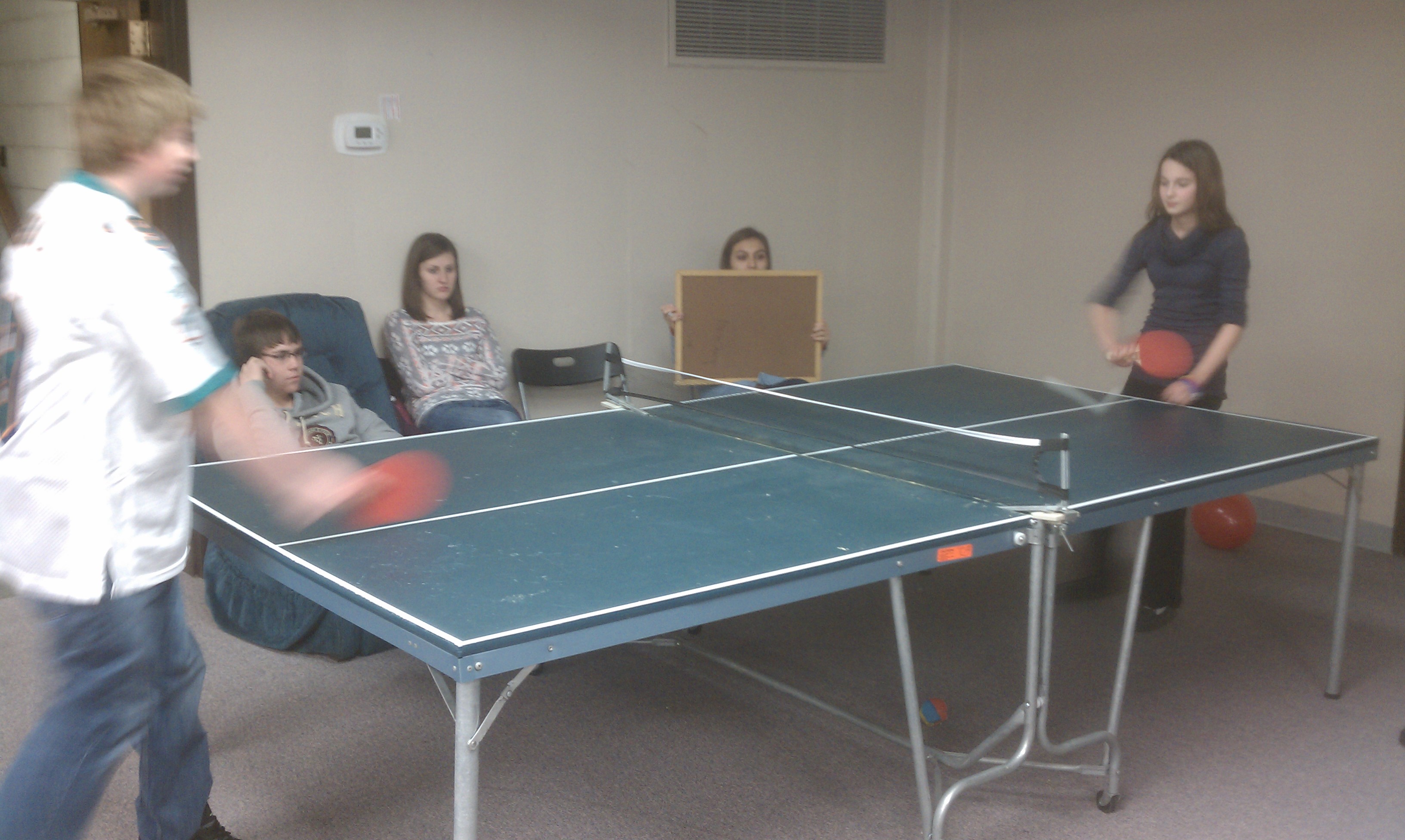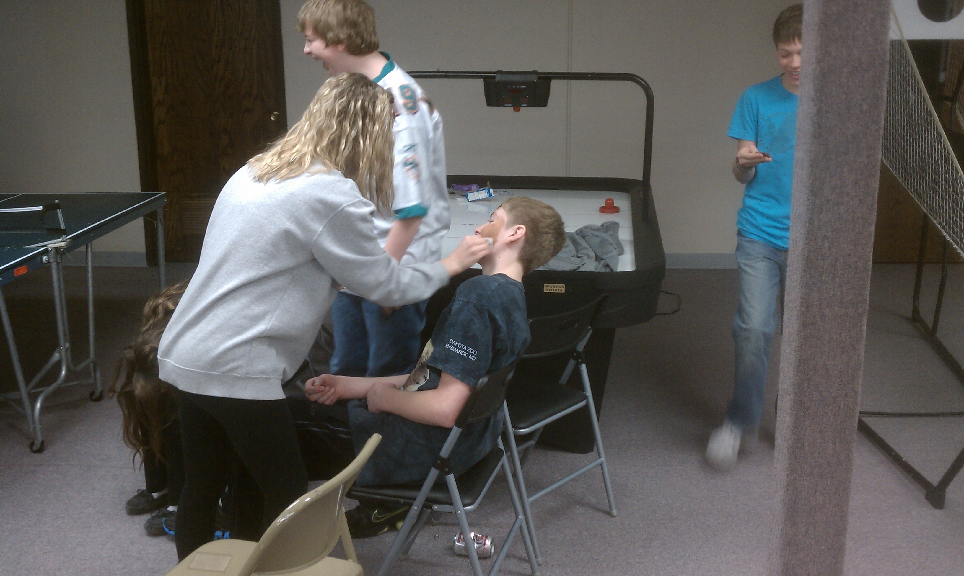 Ping Pong Tournament Part 2 took place tonight at BCC. Our Champion tonight was Isaiah and the runner up was Jarod. As you can see, we had a bit of fun at Jarod’s expense when Olivia found some Mary Kay products in one of the rooms in the basement. We sincerely hope Jarod can get the stuff off of his face, because he tried washing it off right after he saw what it looked like and was unsuccessful. We had a total of 8 players tonight, versus the 7 we had before so for time reasons we had a single elimination tournament.