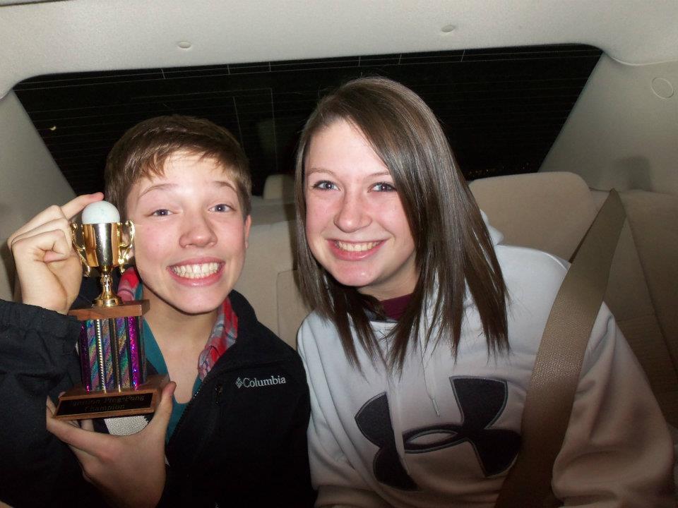 I would like to introduce you to Landon and Sarah. Landon is our current Ignition ping pong champion (you can see him with him trophy) while Sarah came in 2nd place. We held our tournament this past Wednesday night, December 28, and had a blast. Our tournament was a double elimination format that had a total of 8 players. The sad part is, that picture doesn’t even come close to doing justice to how much fun was had. There was laughter, competitiveness, no crying, someone losing all their contacts on their cell phone (we still have no idea how that happened), and even a little bit of pain when we thought Sarah broke her toe on one of the table legs.